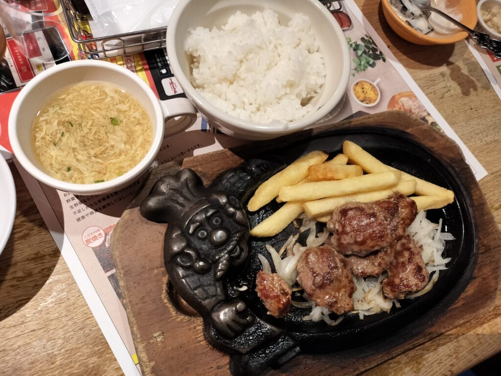 息子が頼んだおこさまステーキ。ごはんは普通盛りです。