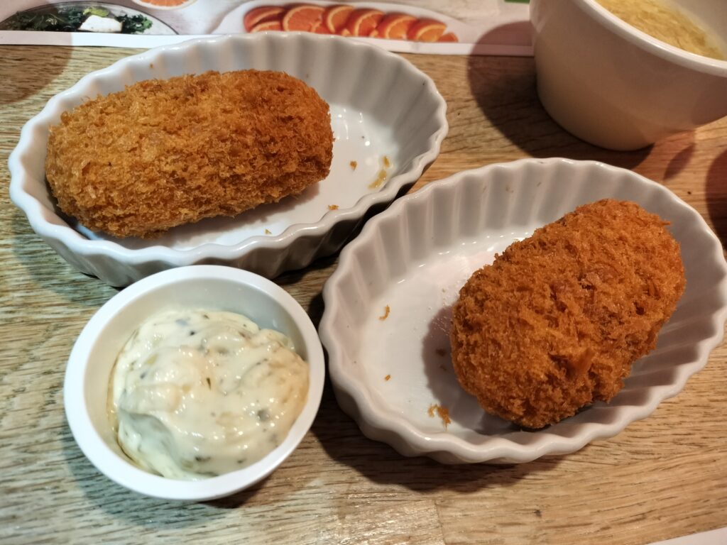 オマールビスク風クリームコロッケを2つ。別料金のタルタルソースも2つ注文してしまいましたが、これは1つで十分でした。(量が多くて、1つまるまる残してしまった)