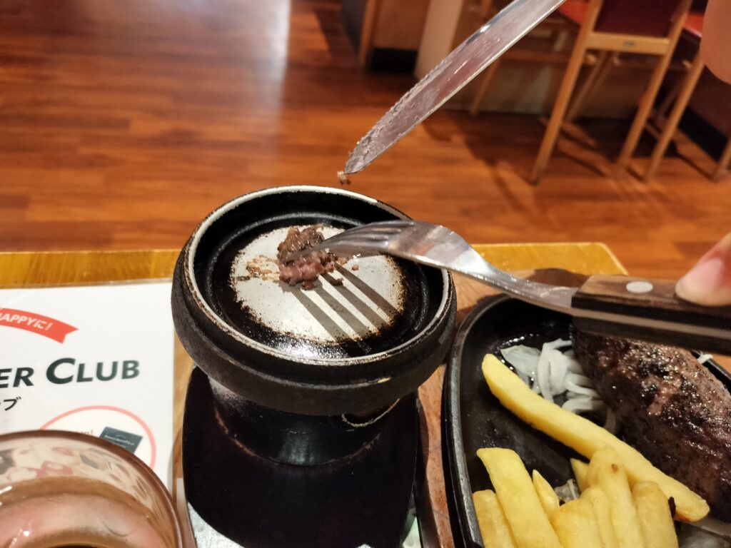 ちょっと残念だったのが、焼き具合。「ミディアムレア」を注文したにもかかわらずほぼ「ウェルダン」。炭火で焼いているからゆえ焼き加減は難しいのかもしれませんが、次回は「レア」を頼もうねと夫と話しました。